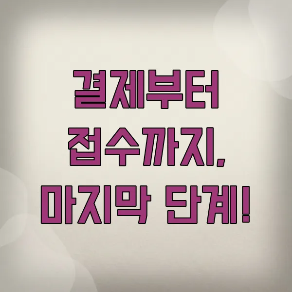 정보 입력과 요금 확인까지 마쳤다면 이제 결제하고 접수하는 단계만 남았어요. 거의 다 왔으니 조금만 더 힘내세요!